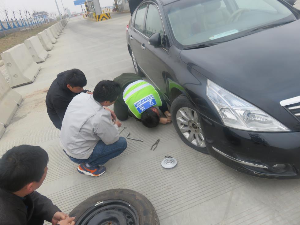 317日,天氣有些陰沉,雖沒有晴天的明朗,卻依然明亮。故城主線站收費二班正常的進行著日常收費作業(yè)。中午12點左右,一輛豫A黑色轎車緩緩駛?cè)?/span>109收費車道。在交費時,班長張鳳新根據(jù)工作經(jīng)驗發(fā)現(xiàn)這輛車行駛有些不正常,通過再次仔細觀察發(fā)現(xiàn),這輛車的右前輪胎胎壓不足,輪胎是汽車安全行駛的一個很重要的部件,由于輪胎的原因而造成的事故其后果是很嚴重的,胎壓是輪胎的生命,所以隨時保持在正確的胎壓下行駛,是非常重要的。在這一情況下,為避免發(fā)生安全事故,班長張鳳新立即告知車主,并將車輛疏導(dǎo)至安全地帶進行檢查,檢查過程中發(fā)現(xiàn)原來是有一根鐵釘扎進了輪胎里。由于是第一次發(fā)生這種狀況開車司機也非常緊張,沒有維修經(jīng)驗的他費了九牛二虎之力也沒能換下備胎。見此情景一向熱心腸的王笑男自告奮勇,擼起衣袖,一路小跑過去,完全不顧臟和累趴在地下幫助車主維修,后面陸續(xù)又有幾名同事加入維修的隊伍。最終在大家的積極配合之下,很快將備用輪胎換了下來。事后,司機連聲道謝說:真謝謝你們,要不是你們及時提醒,在半路上我可真走不掉了。