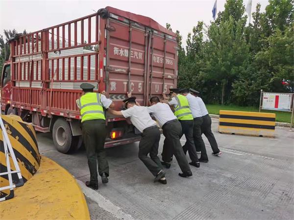 8月28日晚上六點二十分左右,鄭口收費站108車道正在進行收費作業,一輛貨車突然熄火,這引起了收費員的注意,收費員立刻通知疏導上前查看,經過詢問,原來是貨車壞了,無法啟動,為了方便司機修理貨車,班長決定幫司機把車推出車道,由于該車將近8噸,在崗人員無法推動,班長立刻聯系后勤人員上崗幫忙,在大家齊心協力的幫助下,貨車很快推出了車道,司機師傅一遍遍“謝謝,你們辛苦了”,這使推車的辛苦瞬間消失。