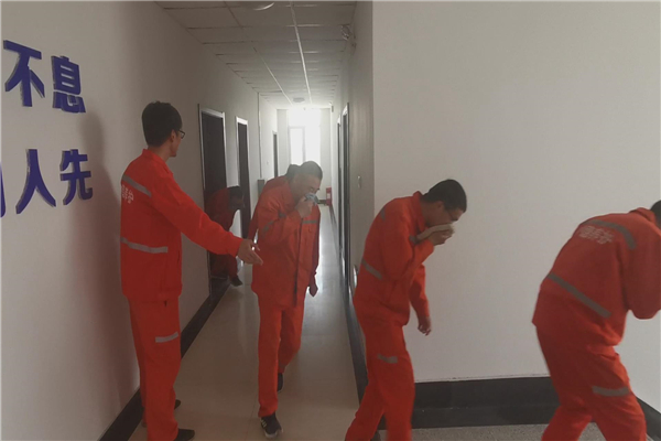 第二部分為消防疏散演練,首先模擬火災場景,兩名安全員發現火情后,快速撥打119報警電話,并拉響警報器組織全體人員快速有序的疏散到安全地點,同時指派專人駕駛水車對火災進行撲救,各股室負責人清點本股室人數,確定有人員被困,現場領導在了解火情和做好自身防護的情況下組織營救被困人員,并對被困人員施救,同時撥打120急救電話。