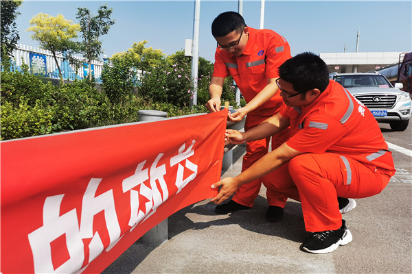 活動延續(xù)了2020年安全生產(chǎn)月“消除事故隱患,筑牢安全防線”的主題,青蘭養(yǎng)護(hù)工區(qū)在收費站外廣場設(shè)立宣傳臺,向過往司乘發(fā)放《應(yīng)急知識手冊》,并悉心解答了過往司乘在安全行車方面的問題。與此同時,在收費廣場懸掛安全宣傳條幅,營造了濃厚的安全宣傳氛圍。