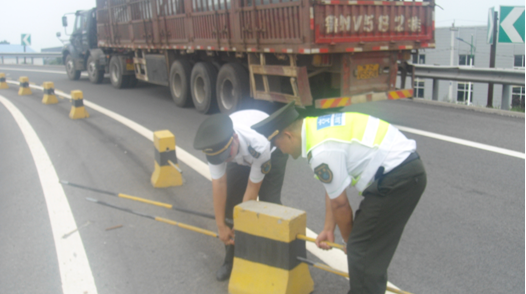 就在這樣炎熱的夏天,距離龍華收費(fèi)站下道口大約3公里的地方出現(xiàn)了一個(gè)重大安全隱患。一位駛?cè)胧召M(fèi)道的司機(jī)說(shuō)距離收費(fèi)站大約3公里處有中央分隔帶有一部分已經(jīng)偏離了正常位置,對(duì)于在高速上行駛的車(chē)輛非常危險(xiǎn)。聽(tīng)到這個(gè)消息,A班班長(zhǎng)解澤將情況通知值班站長(zhǎng)后,帶領(lǐng)兩個(gè)疏導(dǎo)人員杜海峰和孫雪松,急忙去排除安全隱患。天氣悶熱,三個(gè)人一動(dòng)身衣服就濕透了。但是他們并沒(méi)有心思關(guān)心流了多少汗,心里想的只有盡快到達(dá)出事地點(diǎn),排除安全隱患。小跑過(guò)了匝道口,又跑過(guò)了一座橋。遠(yuǎn)遠(yuǎn)望去,看到了出問(wèn)題的中央分隔帶。三人急忙到了出事地點(diǎn),班長(zhǎng)解澤和杜海峰合力把偏離正常位置的分隔帶搬到了正常的位置。在一旁的孫雪松同志記下來(lái)這溫暖人心的一幕。