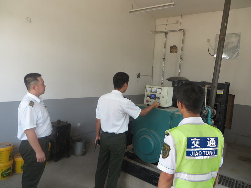隨著雨季的到來,為全面做好汛期安全工作,確保站內人員、設備安全,614日上午,廟鎮收費站房站長帶領各班班長在全站范圍內進行了防汛安全大檢查。重點針對收費站區、收費廣場的排水系統、防汛物資的配備進行檢查,對發電機能否在正常啟動進行測試,檢查油料是否充足。通過巡檢發現,收費廣場部分排水溝有堵塞現象,防水沙袋大部分出現老化破損無法搬運,發電機房部分通風窗口不通暢等安全隱患。廟鎮收費站立即安排人員對所發現的問題進行整改,對收費廣場的排水溝進行了清理,做到干凈暢通,防止內澇發生;對老化破損的防水沙袋進行更換,確保汛期防汛物資供應到位;對放電機房通風窗口進行整理。