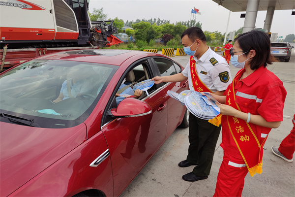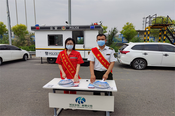 四是開展安全宣傳咨詢日活動。與青蘭收費站聯合進行宣傳咨詢活動,在收費站口懸掛安全月宣傳條幅并設置咨詢臺,采取現場講解、發放宣傳資料等方式開展宣傳咨詢活動,向過往司乘人員解讀感興趣的交通安全等方面的內容,針對司乘就安全方面提出的問題進行了詳細解答,積極做好與司乘的互動交流,與此同時,還發放了預防中暑手冊和全國安全生產月等宣傳資料。