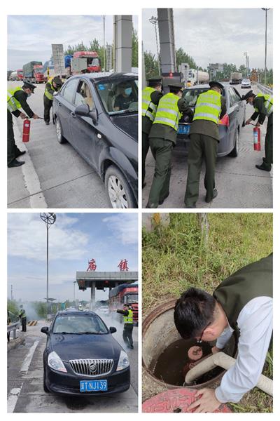 故障車輛被推到收費廣場空曠區域,崗上人員在使用滅火器滅火的同時,備勤人員迅速連接站內消防水帶進行輔助滅火,雙管齊下火源很快得到了控制,為防止存在余火,滅火人員在一旁觀察后才撤離起火現場,而后,幫助司機聯系修理廠檢查。