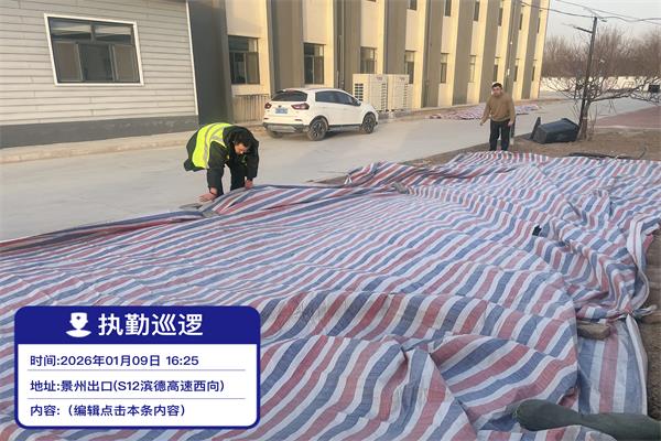 嚴控院內安全隱患,防范物料灑落風險。針對院內堆放的易灑物料,收費站第一時間組織人員用帆布進行全面覆蓋、扎實固定,有效避免了大風天氣下物料揚塵、灑落等問題,既保持了站區環境整潔,也消除了因物料散落引發的安全隱患。
