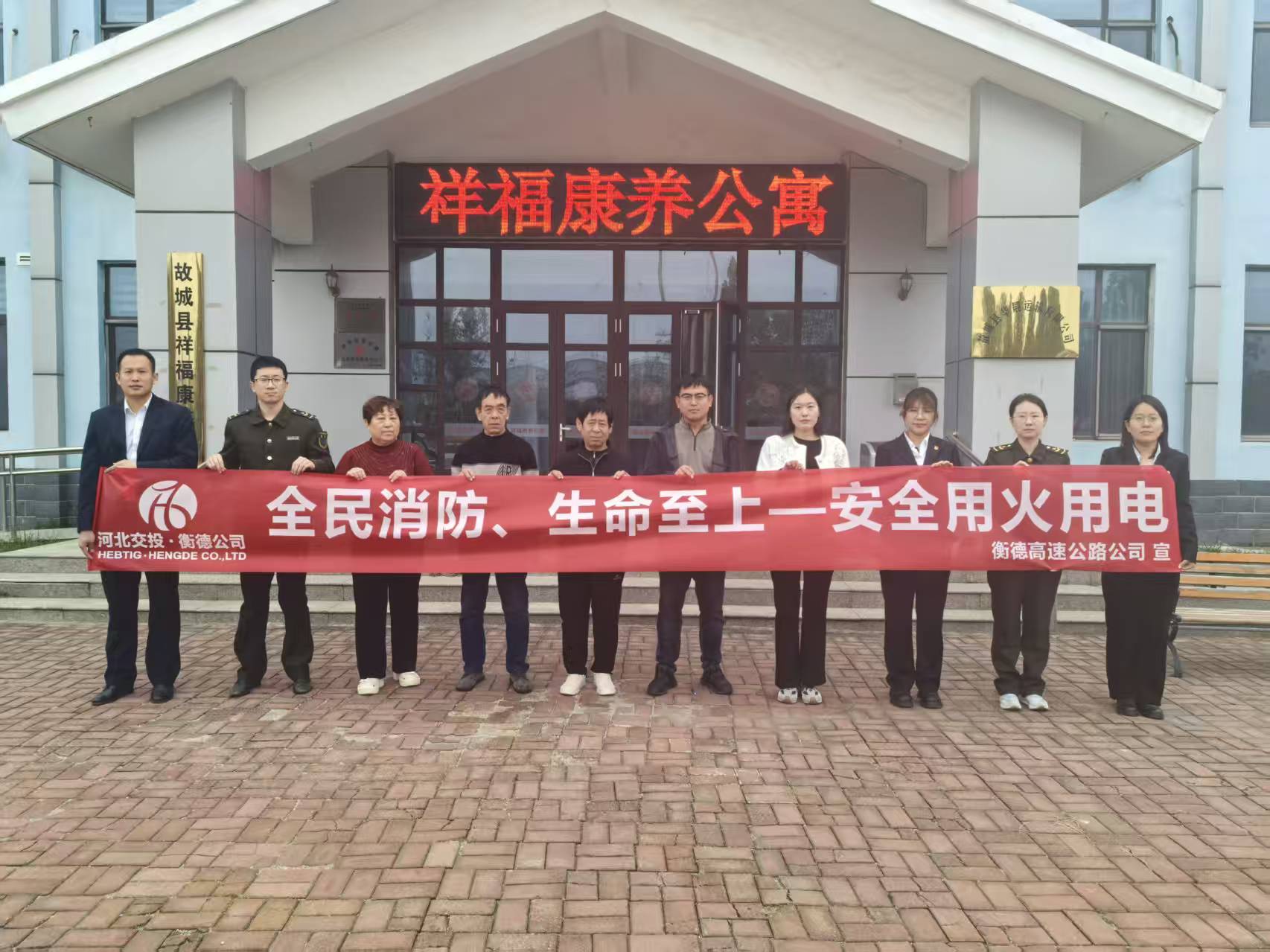 ?11月9日是第34個全國消防日,為做好消防安全宣傳及志愿服務工作,近日,衡德公司機關第二黨支部與鄭口收費站黨支部走進故城縣祥福康養公寓聯合開展了消防日安全宣傳活動。