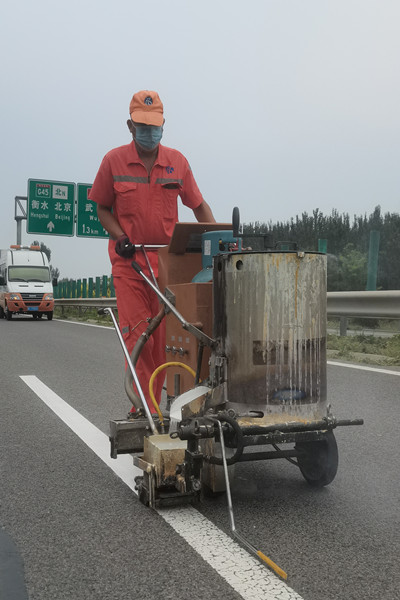 青蘭養(yǎng)護(hù)工區(qū)全體職工勇于擔(dān)當(dāng),用心做事,團(tuán)結(jié)協(xié)作,密切配合,保障標(biāo)線(xiàn)優(yōu)化提升工作有條不紊的進(jìn)行。后勤保障人員提前一天將熱熔標(biāo)線(xiàn)涂料、玻璃珠等材料裝車(chē),并做好施工車(chē)輛的出庫(kù)審批工作;施工現(xiàn)場(chǎng)則嚴(yán)格按照《公路養(yǎng)護(hù)安全作業(yè)規(guī)程》進(jìn)行作業(yè)控制區(qū)布設(shè),有負(fù)責(zé)加熱標(biāo)線(xiàn)涂料的,有負(fù)責(zé)推車(chē)劃線(xiàn)的,有負(fù)責(zé)擺放警示標(biāo)志及路錐的,有負(fù)責(zé)搖旗指揮過(guò)往車(chē)輛的等等,大家分工合作,秩序井然;為減小占道施工對(duì)車(chē)輛暢行的影響,大家主動(dòng)放棄午休時(shí)間,午餐在施工現(xiàn)場(chǎng)就地解決,短暫休息幾分鐘后就又投入到工作當(dāng)中。