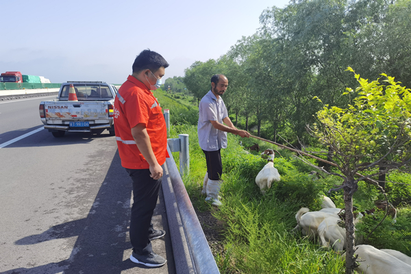 青蘭養護工區提醒廣大沿線村民,高速公路上來往車輛多、速度快,一旦靠近高速公路放牧,很難避免放牧的牲畜跑上高速公路路面,極易發生交通事故,為了自己和他人的安全,請勿到高速公路旁放牧,共同維護高速公路的交通安全。