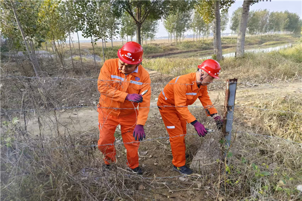 施工過程中,養(yǎng)護股施工人員按規(guī)定穿戴好安全防護用品,施工人員以專業(yè)態(tài)度嚴守操作規(guī)范,逐一對損壞隔離柵進行修復(fù)、更換,讓“殘缺柵欄”煥發(fā)“安全新生”。