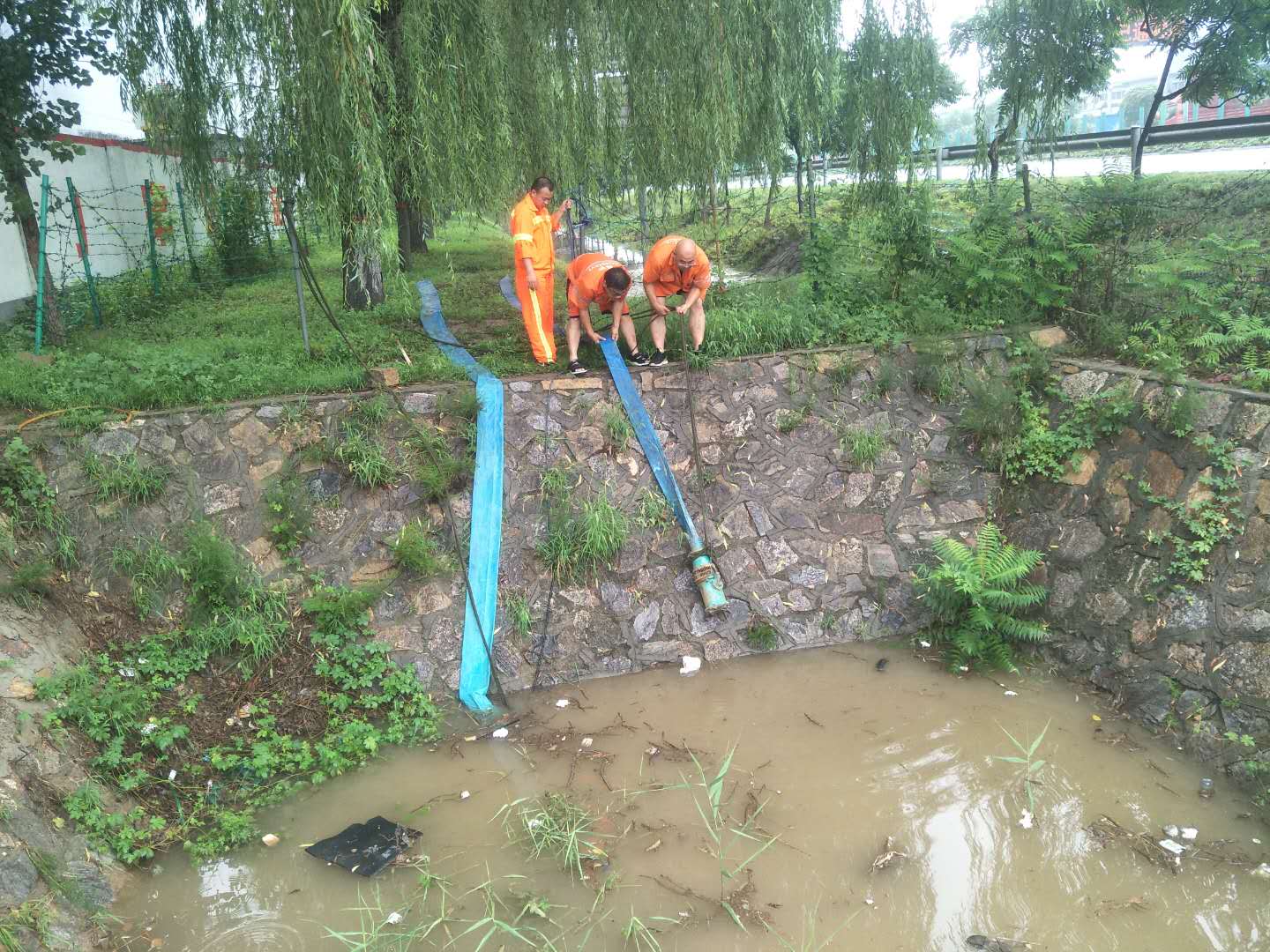 近日,衡水地區連續出現強降雨天氣,衡德公司青蘭養護工區高度重視。7月13日開始,暴雨天氣來襲,養護工區領導班子組織人員雨中加強對衡德高速全線巡查。做到早發現、早清理、除隱患;雨前預防、雨中巡查、雨后檢查。經過一天的雨勢,巡查時發現主線有倆個蓄水池的水已滿。工區迅速啟動防汛應急預案,領導班子冒雨親自帶領職工趕赴現場進行排水作業。安排了2臺抽水泵對蓄水池進行抽水,由于雨勢過大,抽水作業一直進行著,每個人全身都被淋濕了,沒有一個人喊苦喊累。