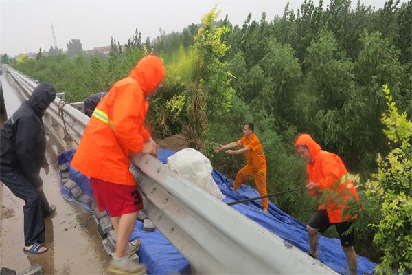 8月14日,早氣象臺(tái)發(fā)布衡水地區(qū)暴雨藍(lán)色預(yù)警,工區(qū)領(lǐng)導(dǎo)班子積極做出響應(yīng),雨情就是命令,全員備勤,做好防汛保暢工作。衡德高速故城支線高速K3+260的邊坡,由于前期修復(fù)剛進(jìn)行土方回填,雨勢(shì)剛好來臨,為防止發(fā)生第二次水毀,工區(qū)出動(dòng)人員8余人對(duì)此進(jìn)行苫布遮蓋,并用多塊石磚壓實(shí)固牢,做好防護(hù)措施,最大程度上降低雨水對(duì)邊坡的傷害。
