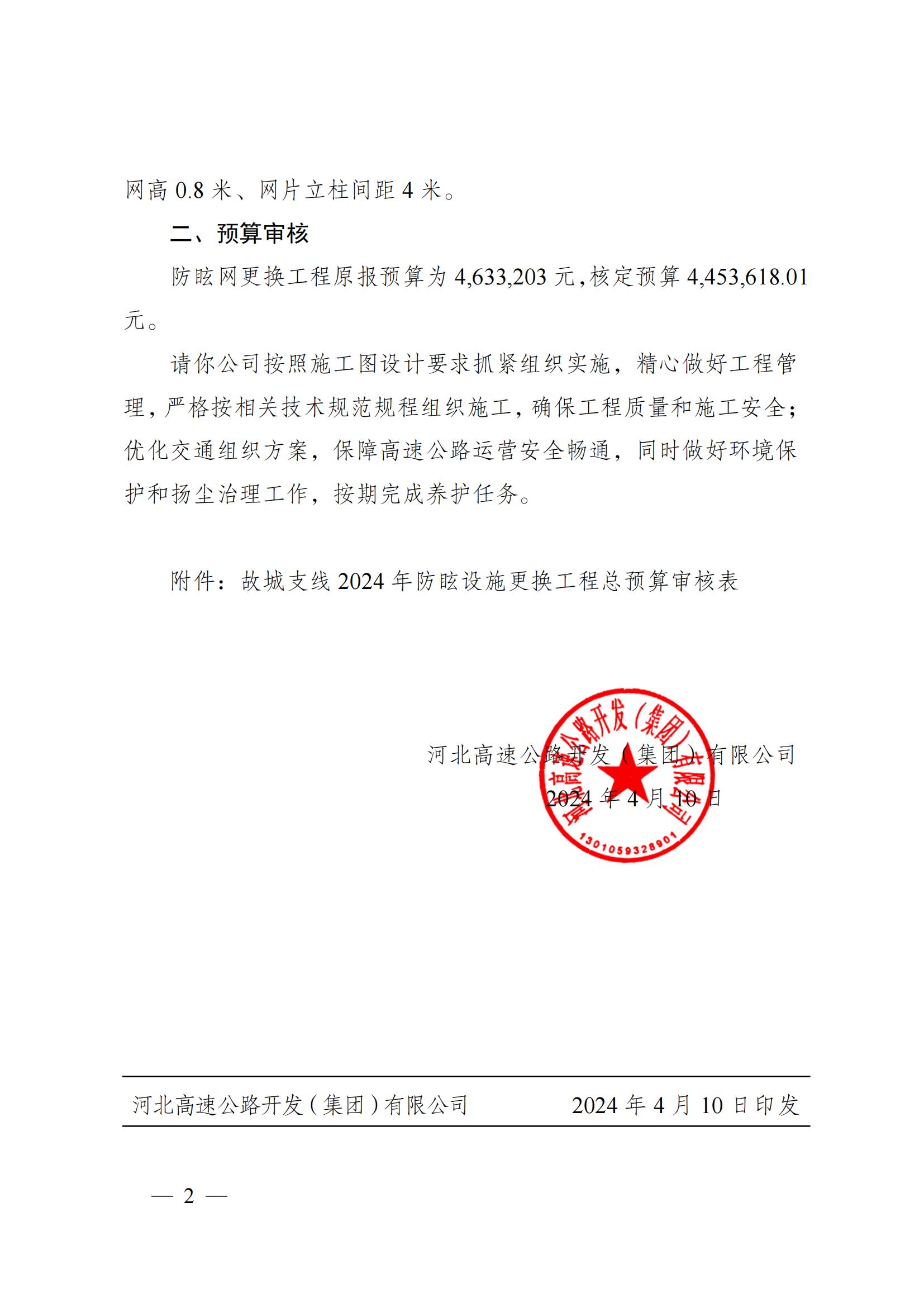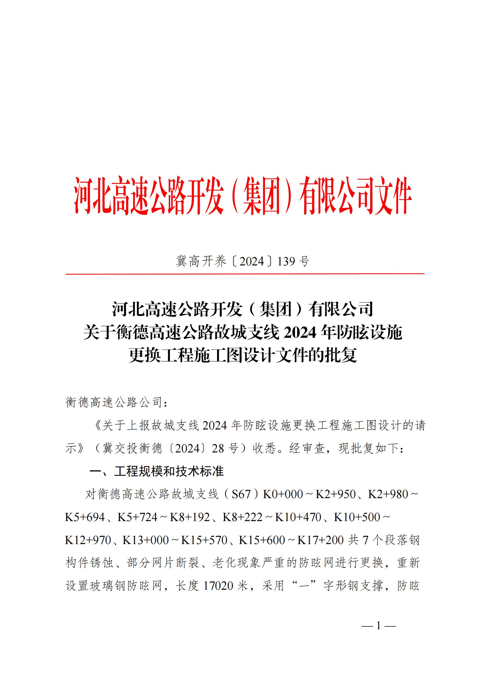 關(guān)于衡德高速公路故城支線2024年防眩設(shè)施更換工程施工圖設(shè)計(jì)文件的批復(fù)