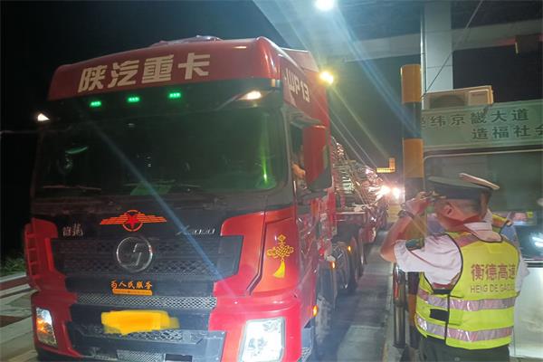 經(jīng)過兩個(gè)多小時(shí)的蹲守,在凌晨2點(diǎn)左右,車輛可疑車輛突然加速沖入收費(fèi)站車道,由于提前預(yù)判和縝密部署,值班站長沈曉東和收費(fèi)班長范海峰于廟鎮(zhèn)北站上道口成功截停這輛闖口車輛,并迅速啟動路警一體化工作機(jī)制,第一時(shí)間將情況報(bào)告王瞳治超站和景縣交警大隊(duì)靳莊中隊(duì),向其提供了相關(guān)照片、視頻。王瞳治超站和景縣交警大隊(duì)靳莊中隊(duì)接到報(bào)案后,根據(jù)掌握的資料立即展開調(diào)查發(fā)現(xiàn)核載49噸,實(shí)載76噸,超載55.1%。