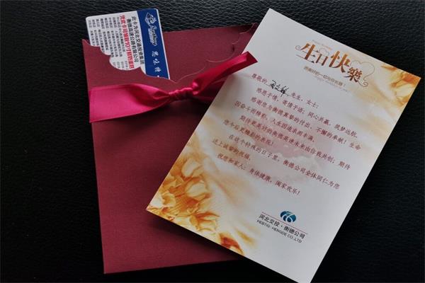 為創建和諧的企業文化,體現“以人為本”的企業理念,人力資源部組織開展“送生日祝福 感謝有你”活動。此次活動在原有生日蛋糕劵的基礎上為每位“壽星”增加了生日賀卡,進一步體現了公司對職工的關懷和愛護。