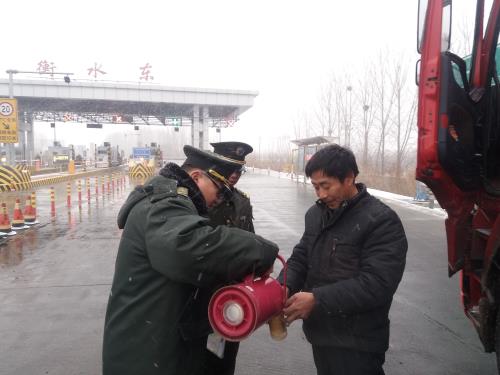 2月21日,衡水迎來了一次降雪。剛開始因地面溫度高,雪落下便立刻融化,地面十分濕滑,衡水東站職工及時變換適用雨雪天氣的文明用語,提示過往司乘雨雪天氣行車注意安全。我站積極協助公安交通執法部門,做好因惡劣天氣執行交通管制勸返客車和危險品車輛