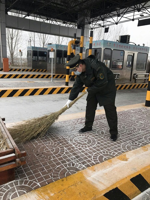 站長鄭驥飛、副站長張世佳身先士卒,不畏嚴寒和職工一起清理積雪。大家有人掃雪,有人鏟雪,有人負責用推車運送積雪,一切高效且有條不紊地進行著。經過兩個多小時的努力,收費廣場及車道已被清理干凈。本次除雪保暢不僅保障了司乘行車順暢及安全,同時也檢驗了19日除雪保暢的演練效果。事實表明,衡水東站職工能夠高效、有序地進行除雪保暢,為司乘提供優質的服務。