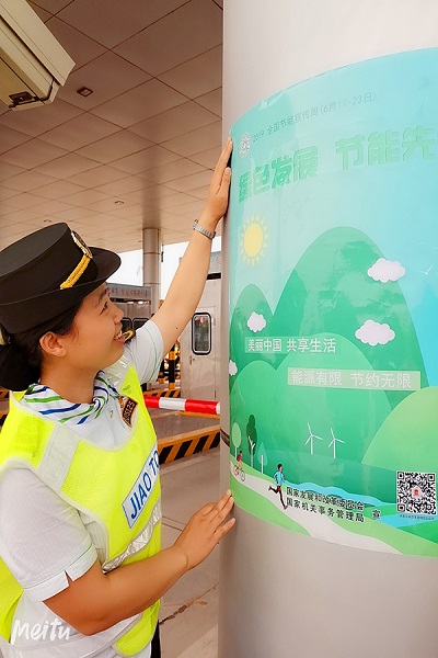 二是拓寬群體,引領節(jié)約。聯合青蘭養(yǎng)護工區(qū)在收費車道張貼宣傳海報,向過往司乘宣傳節(jié)能周活動內容,倡導綠色出行,低碳生活。同時,對站內臨時工人員進行宣傳教育,提高其節(jié)約意識,養(yǎng)成節(jié)能習慣。