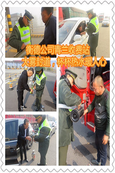 11月13日,青蘭收費(fèi)站因大霧封道,從晚上10點(diǎn)42分封道,到早上8點(diǎn)交接班,封道時(shí)長已近10個(gè)小時(shí)。想到在此滯留的司機(jī)徹夜等候,饑寒交迫,收費(fèi)班長賈朋接班后,迅速從便民服務(wù)臺(tái)取來熱水壺,帶領(lǐng)班組成員將盛滿熱情的熱水送到司乘朋友的身邊。大家見到如此貼心的服務(wù),紛紛拿出手機(jī),拍攝成小視頻,上傳到網(wǎng)絡(luò),司乘朋友留言“收費(fèi)站人員為等待的司機(jī)們免費(fèi)送來熱水,青蘭收費(fèi)站好樣的,正能量,服務(wù)大家,方便你我,為你們點(diǎn)贊”。