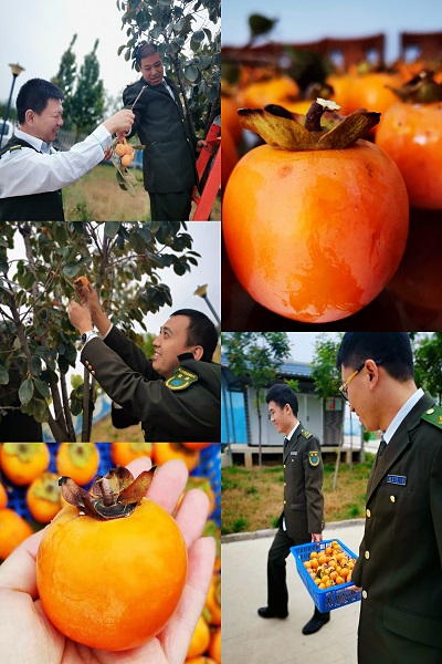 首先班長尚澤確定了分工,每個人都興高采烈地忙碌起來。有的負責(zé)登上梯子摘柿子,有的負責(zé)將接遞擺放柿子。雖然天空下起了濛濛細雨,但抑制不住他們內(nèi)心“豐收的喜悅”。