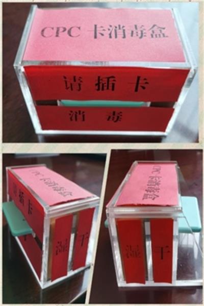 目前,新冠肺炎疫情雖然得到有效控制,但是防控工作依然不能松懈。針對高速公路正常運營后如何減少職工與司乘的直接接觸,提高一線職工安全系數,鄭口收費站副站長趙娜從日常工作細節入手,創新思路,思考研究制作了保障職工人身安全的“CPC卡消毒盒”。從盒子的選材、尺寸大小等入手,與票證室主任李翔一起動手研究,經過反復多次的實踐、修改、完善,最終制作完成了“CPC卡消毒盒”。消毒盒內分兩層,共放置兩塊海綿,一塊是浸濕消毒水的海綿,一塊是干海綿。司乘在遞卡時,先將CPC卡插到消毒盒,通過消毒海綿對CPC卡的全面消毒后再經過干海綿擦干,由收費員在另一端抽出。實現了第一時間對通行卡的消毒,進一步保障了職工的工作安全。