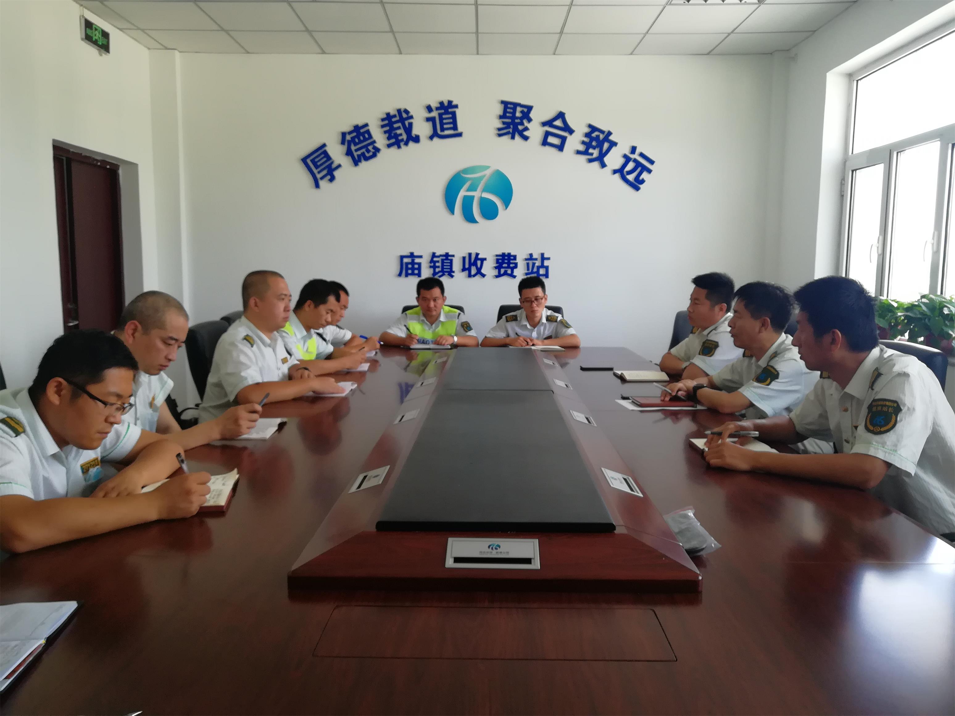 為落實衡德公司疫情防控緊急會議的要求,6月22日上午,廟鎮收費站組織召開了疫情防控工作會議,就站內疫情防控工作進行再動員、再強化、再部署,站班子成員及中層參加會議。