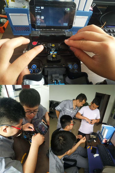 三是組織學(xué)習(xí)光纖熔接技術(shù)。從剝纜開始,一層一層將外皮去除,露出里面的光芯,用酒精擦拭干凈,用裁線器截斷放入熔纖機再套管加熱。每個人都上手練習(xí),從“生”到“熟”,逐步降低光纖傳輸在接頭處的損耗。