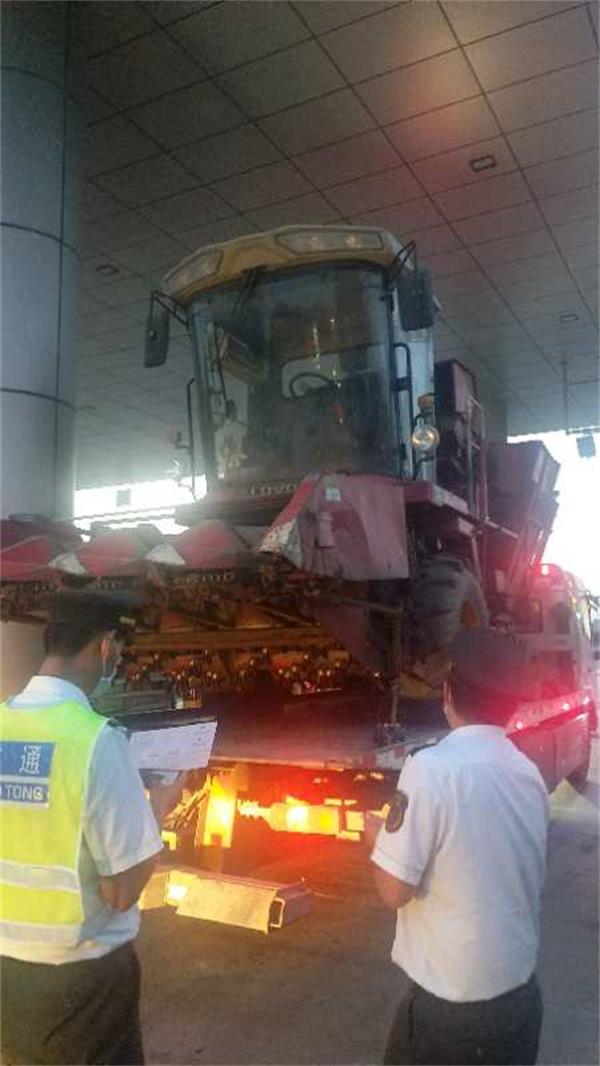 2020年7月23日20時,正值鄭口收費站收費A班中班作業,這時兩輛裝載聯合收割機的運輸車輛進入了108車道,司機主動向收費員李曉城出示了《聯合收割機作業證》、《農機號牌》和《聯合收割機行駛證》相關證件,收費員李曉城看到后發現車證嚴重不符,立即將情況報告給班長,隨后,班長陳桂巖對司機耐心解釋了聯合收割機免收車輛通行費政策和規定,并要求司機繳納通行費。最終司乘人員表示理解后補繳了車輛通行費共計338元。