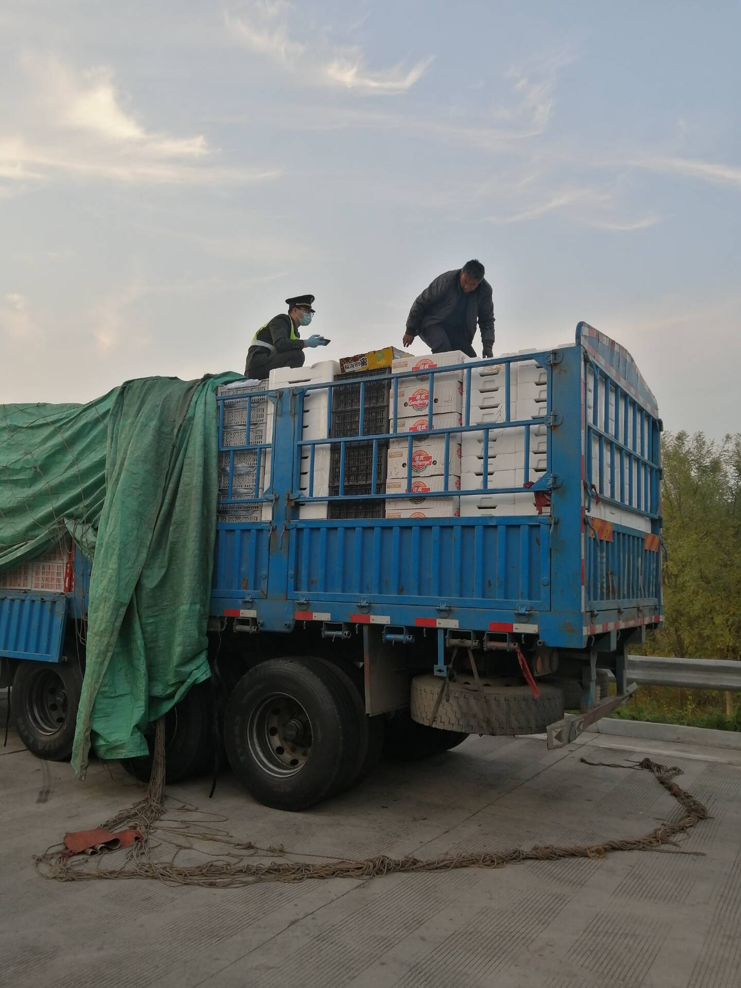 10月15日下午5點左右,廟鎮收費站(南口)收費B班正在進行收費作業,這時一輛冀J牌照的車輛從收費5車道下路,司機說道:“裝的水果,驗貨吧!”。收費員看到這輛車感覺有點可疑,因為在廟鎮收費站下道的綠通車輛很少是六軸的大貨車,而且這輛車裝載的水果品種較多,收費員立即呼叫班長提示對此車要進行重點查驗。
