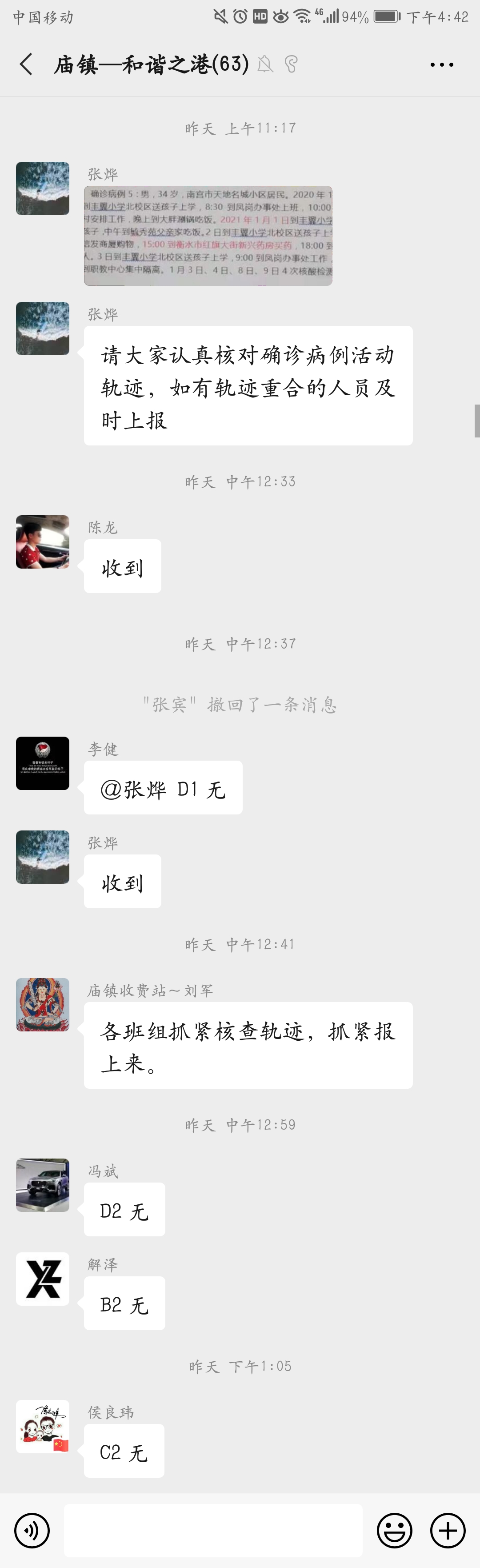 “收到!”各類通知在線上辦公群發布時,每位職工都會做出相應的回復。微信群中,一個個疫情防控措施通知,一張張確診病例行程軌跡截圖,一段段關切的問候,彰顯著“家長”對單位這個大家庭“家人們”關愛。