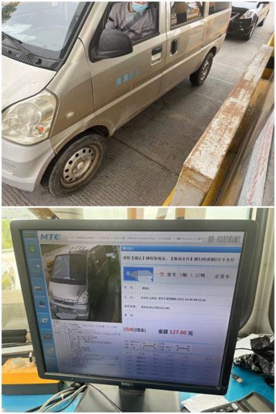 10月7日上午8時30分左右,一輛面包車在下道口島頭處的“小型客車免費車道”和收費108道間猶豫了片刻后駛入了免費車道。這時正在觀察來往車輛的班長發現該車的異常行為,立即過去了解情況。原來該車為8座的面包車,想僥幸通行免費車道,班長告知該車不屬于節假日免費車輛需走人工車道繳費通行。