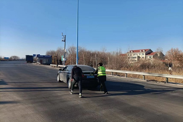 1月7日,一輛黑色小轎車行駛到距衡水東收費站出口50米的地方停下,收費員米志成發現車輛遲遲不動,見此情況,當班收費班長于陽立即上前詢問,經了解得知,車輛離合器不能抬起,無法正常行駛。