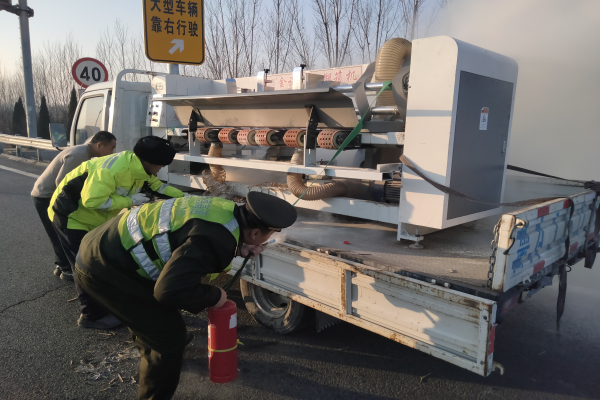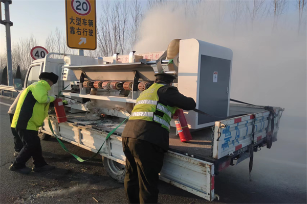2024年1月10日,一輛魯A牌照的小型貨車行駛到廟鎮收費站外廣場,車上的貨物突然起火,收費班長韓國峰和收費員劉澤民見此情況,第一時間采取果斷措施。