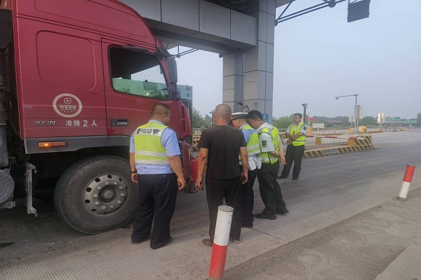 711日,衡水東收費站河北高速交警衡水大隊協同在收費站入口截獲一“支泵減重”的六軸貨車,及時制止了超載運輸駛入高速行為。