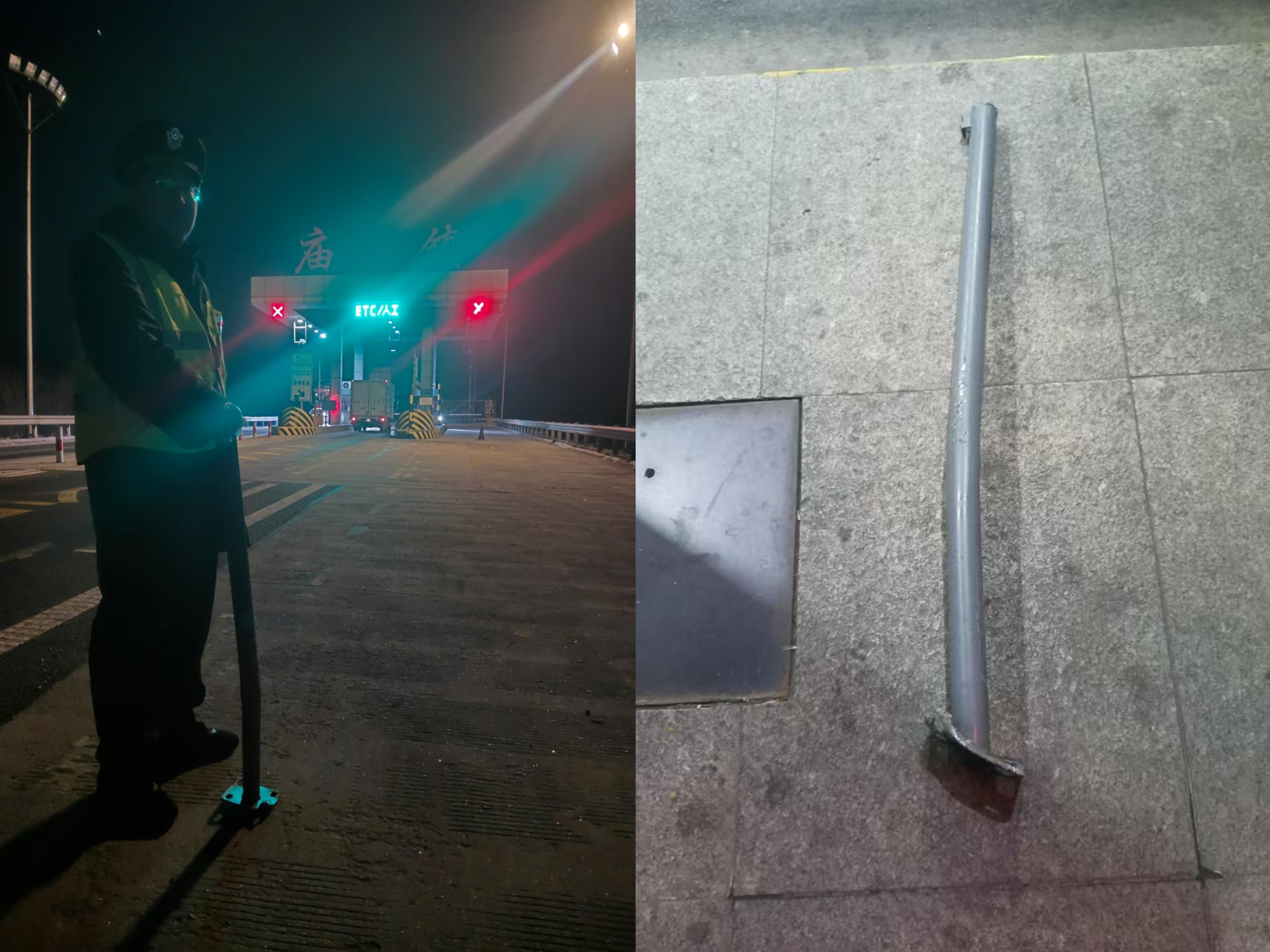 1月13日晚六點四十左右,一車輛下道時,司機對收費員劉曉說:“太危險了!路上有個鐵管橫在路上,剛才差點壓上面。”劉曉聽到后向司機說道:“感謝您提供的信息,能說一下具體位置嗎?”司機回答道:“就在前面不遠,100來米吧,一米來長的一個鐵管。”劉曉再次向司機表示感謝后,立即通知班長孫瀏建。孫瀏建了解后和劉曉兩人佩戴好反光背心攜帶照明設備在距離收費站口100迷左右的匝道圈附近發現了過往車輛掉落的鐵管并將橫在路中間的鐵管轉移至安全地點處置。通過此舉及時消除了安全隱患,保證了過往車輛的行駛安全也體現了廟鎮收費站人員安全意識和責任擔當。