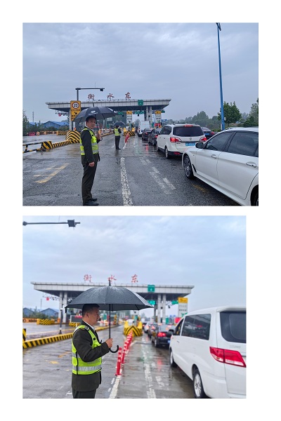 雨幕下,身著反光背心的黨員們第一時間趕赴收費廣場、ETC車道等關鍵點位。他們全然不顧雨水打濕衣衫,指揮車輛有序通行,耐心地解釋路況信息,安撫司機焦急情緒。同時,積極協助清理故障車輛快速通行。