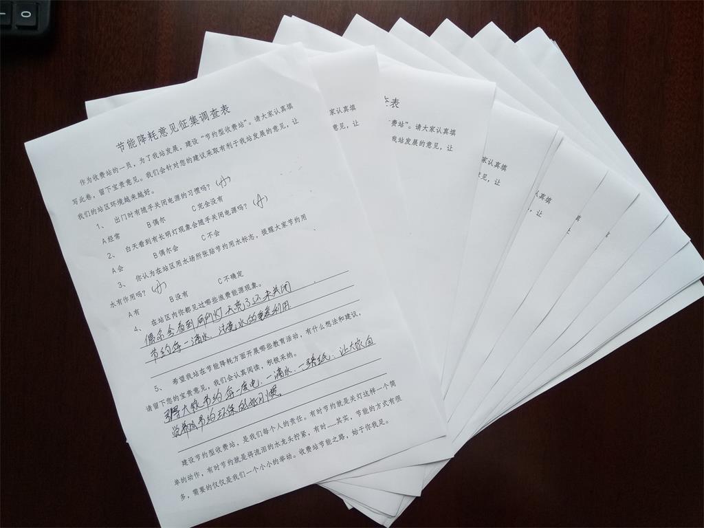 本次意見征集活動共向全體職工發放“意見征集表”34份,回收34份,從節能習慣、浪費現象以及建議意見等方面進行了全面的征集,使得全站職工又一次深入思考降本、思考增效,切實將日常工作、生活與降本增效緊密的聯系在了一起。