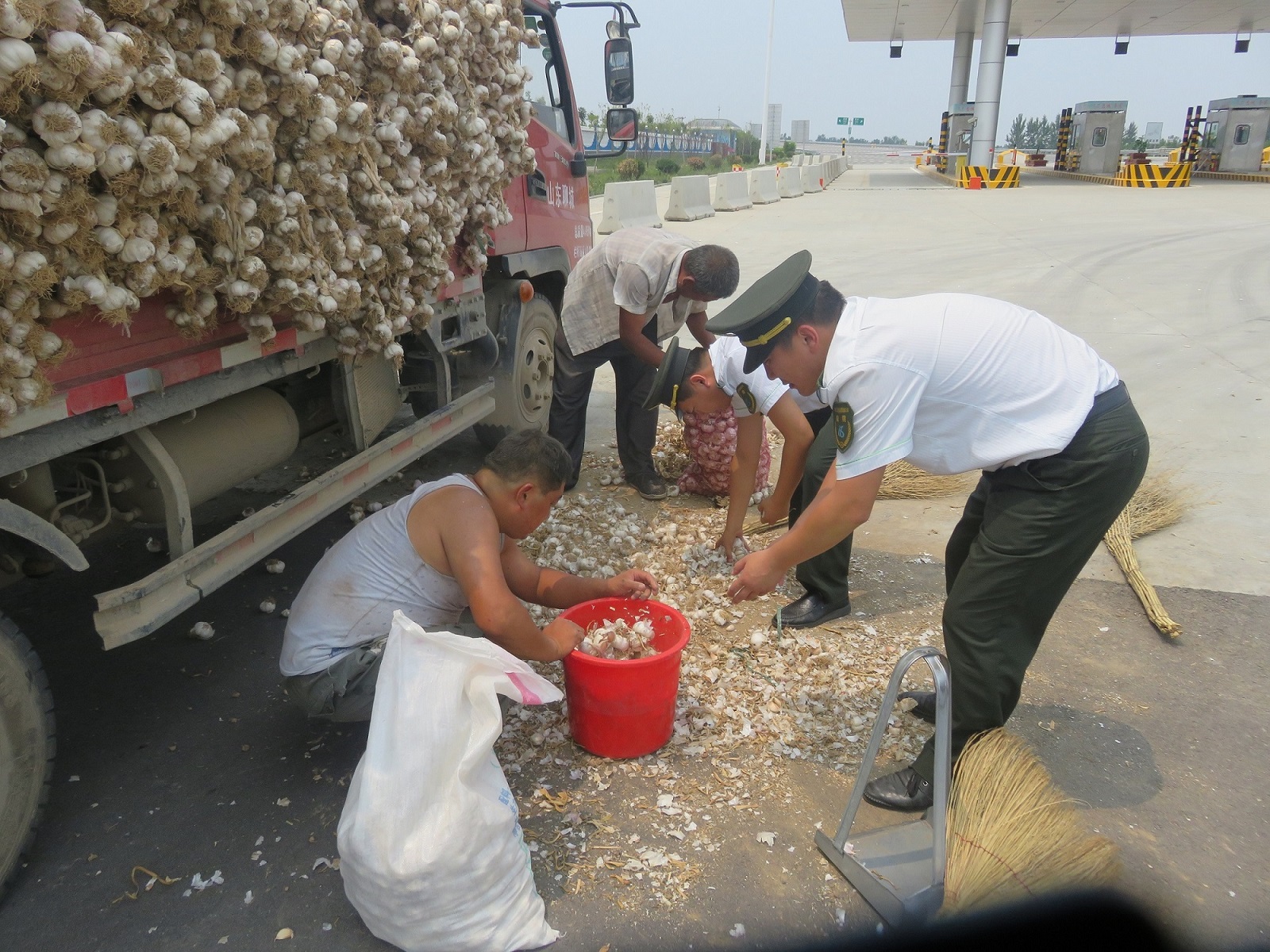 入夏以來持續高溫,司機和車輛在高溫天氣下經常遇到各種各樣的麻煩。716日,一輛拉大蒜的車因為一個煙頭掉在了大蒜中,險些失火,幸好青蘭站的工作人員在查驗過程中及時發現并立刻采取措施,才避免了一場火災事故。