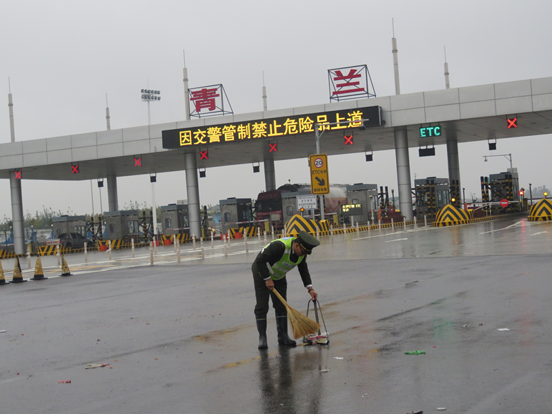 10月9日上午,陰雨連綿,氣溫頗低。由于之前交通管制,許多大車在收費(fèi)廣場(chǎng)滯留,待車輛駛離后,留下許多生活垃圾,使廣場(chǎng)變得異常臟亂。面對(duì)這一情況,青蘭站D班班長(zhǎng)尚澤立即帶領(lǐng)班組成員冒雨對(duì)廣場(chǎng)進(jìn)行清掃,使廣場(chǎng)恢復(fù)整潔。
