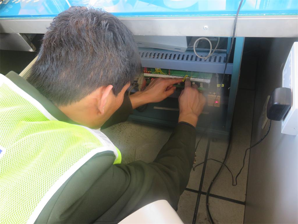 班組成員分為兩組,一組負責檢查崗?fù)?nèi)的設(shè)備,另外一組檢查自動欄桿機和外部視頻監(jiān)控器。在檢查的過程中,發(fā)現(xiàn)工控機內(nèi)的線路示意圖發(fā)生脫落,班長拿來雙面膠和剪刀,大家拿著示意圖仔細核對每個按鈕的位置和作用,確保無任何差錯后再將示意圖貼上,在粘貼的過程中每個成員再次對設(shè)備的功能進行了溫習。經(jīng)過兩個小時的認真排查,在全體班組成員相互配合下妥善完成了機電設(shè)備檢查工作。