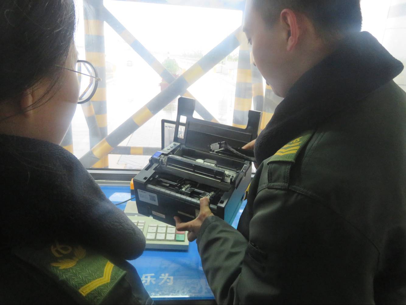 為提高收費人員的工作效率,4月21日,青蘭收費站B班組織開展了清理打印機的活動。首先,班長尚澤簡單的介紹了打印機的內部構造以及什么地方容易藏污納垢。隨后,關閉打印機電源,將打印機簡單拆卸。然后班長拿來事先準備好的鼓風機,將不容易擦拭清理的地方用鼓風機清理,結果吹出了很多灰塵和碎紙屑,再用清潔的抹布將可觸及的部件擦拭一下,最后將打印機裝好。