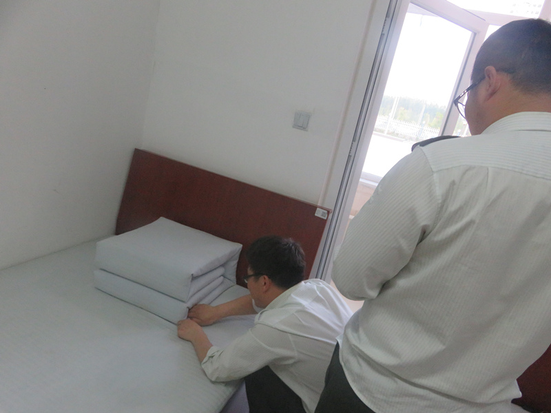 首先,班長謝金樹帶領大家參觀了一下內務標兵宿舍的情況,通過對比班里成員所疊的被子,知道了自己的被子并不是想象中那么好,而是不及格,存在很大不足。在班長謝金樹的示范下,各班組成員知道了疊好被子后怎么去修飾怎么去整理。