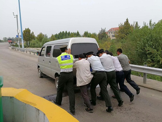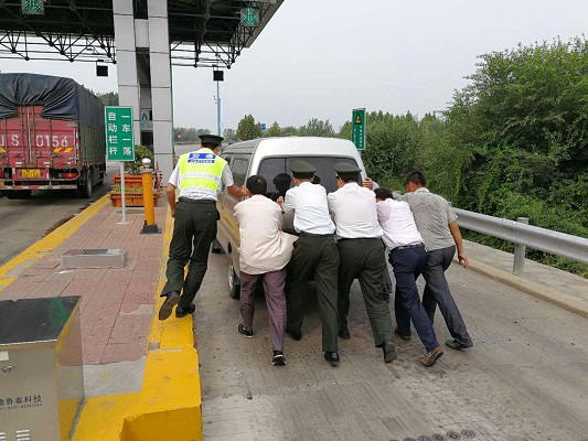 衡水東收費站幫助司機推車 保障收費站正常通行