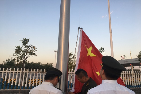 更換期間,秘站長向大家講述國旗的來歷,大家相互感嘆祖國建國69年來滄海桑田的變化,談論著自己生活中的新變化。最后,看著冉冉升起,迎風飄揚的五星紅旗,大家默默注視,表達著對祖國母親繁榮昌盛,國泰民安的美好祝福。