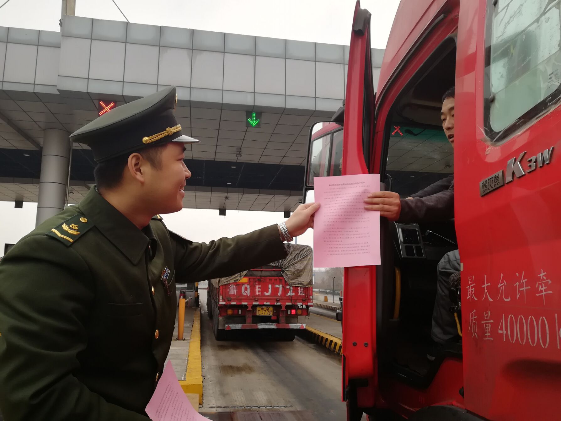 此外,為了使廣大司乘了解CPC卡的使用以及取消省界收費(fèi)站的注意事項(xiàng),景州主線收費(fèi)站黨員先鋒隊(duì)向司乘人員發(fā)放了“取消魯蘇省界收費(fèi)站高速公路客戶須知宣傳頁”,助力司乘人員了解國家政策,減少旅途過程中不必要的麻煩。