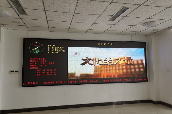 12月,衡德公司為青蘭收費站宿辦樓大廳配備了LED顯示屏,顯示屏實現了集站務公開、值班信息、影像宣傳等多功能為一體的無紙化辦公,充分體現了低碳環保。