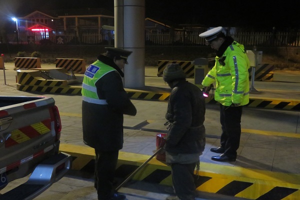 零點鐘聲敲響,青蘭收費站收費B班迎來新年第一個夜班,交接班后,班長賈朋像往常一樣巡查收費廣場安全情況,突然發(fā)現(xiàn)不遠處有一個黑黑的人影趔趄的走過來,班長賈朋隨即叫上疏導員郭獻想一同前去查看。走到高桿燈下,發(fā)現(xiàn)是一名約四、五十歲的中年男子,幾句交談后,發(fā)現(xiàn)這名男子口齒不清,難以正常溝通,正值青蘭收費站年度換票工作剛剛結(jié)束,值班站長秘春雨耐心詢問迷路老人,并迅速轉(zhuǎn)發(fā)朋友圈,在朋友留言和老人的只言片語中得知了老人姓名、大概住址,值班站長隨即聯(lián)系了青蘭鄉(xiāng)派出所,并讓疏導員從便民服務臺倒來熱水,讓其到休息亭取暖,執(zhí)勤民警趕到后,將其安全護送回家。
