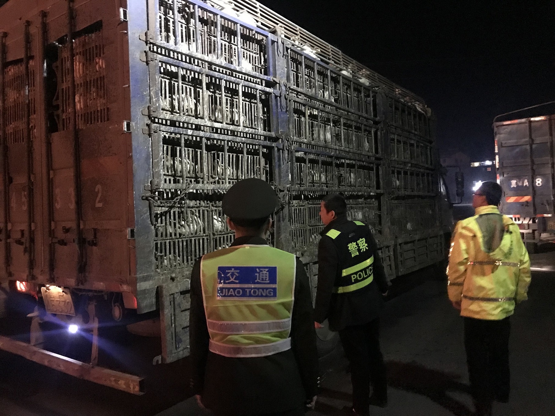 2019228日晚間,正在龍華收費站南廣場進行疏導任務的B班班長陳冀龍發現一輛運輸活禽的車輛形跡可疑,遂立即聯系正在值班的動檢人員前去檢查,通過詢問得知,該車為一輛未取得動檢部門許可證的非法運輸活禽車輛,該車車主本以為天色黑暗,高速收費站警惕性降低,無人察覺,想蒙混過關上高速行駛,未曾想被我們盡職盡責的疏導人員發現。