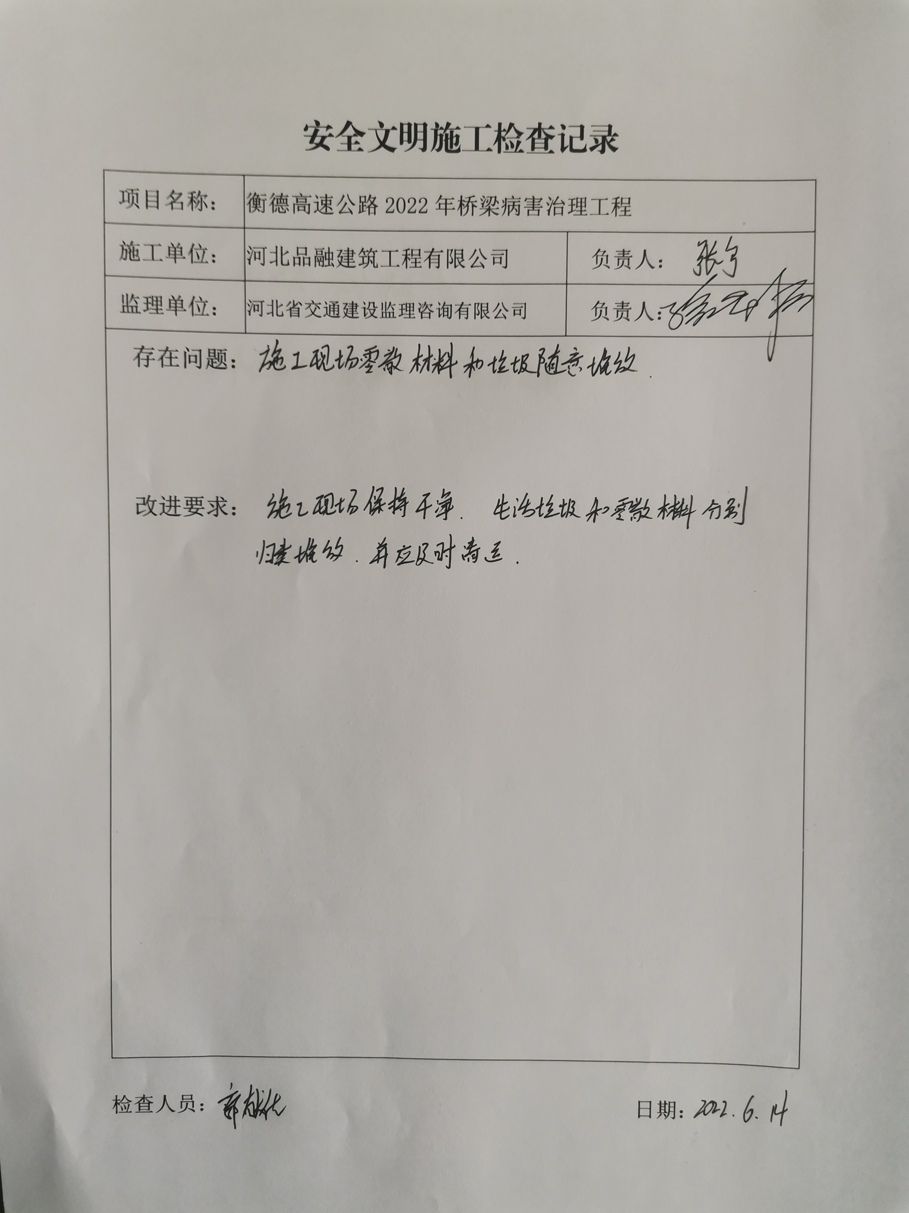 衡德高速公路2022年橋梁病害治理工程安全檢查