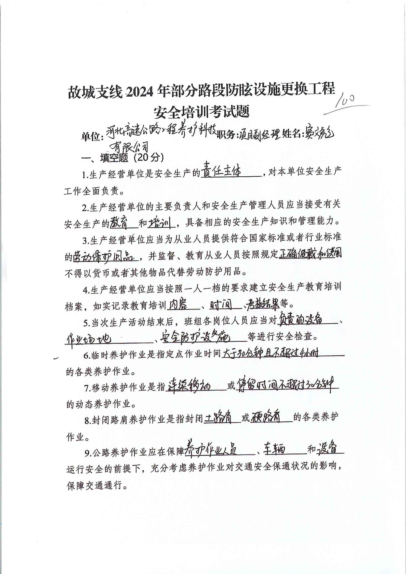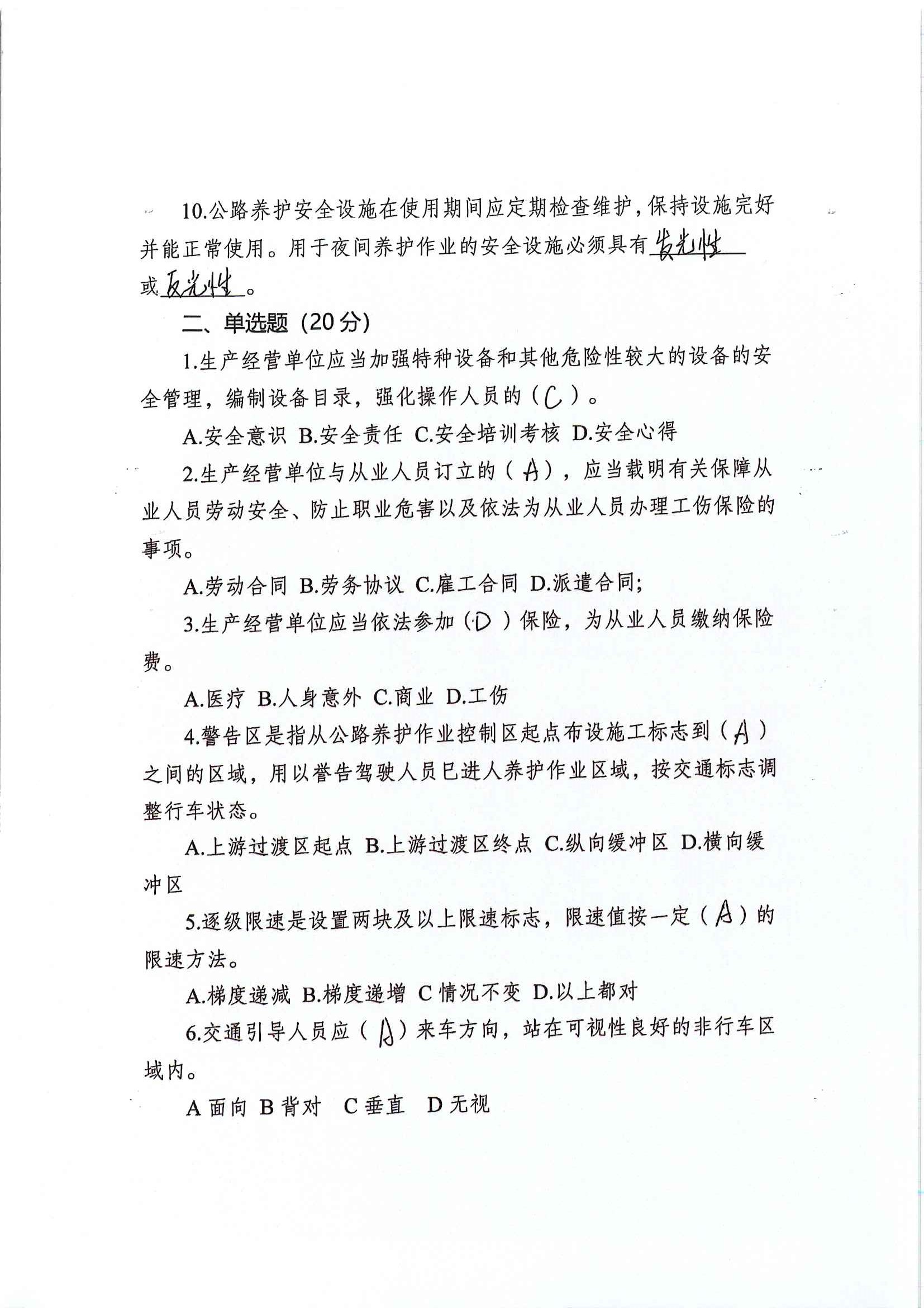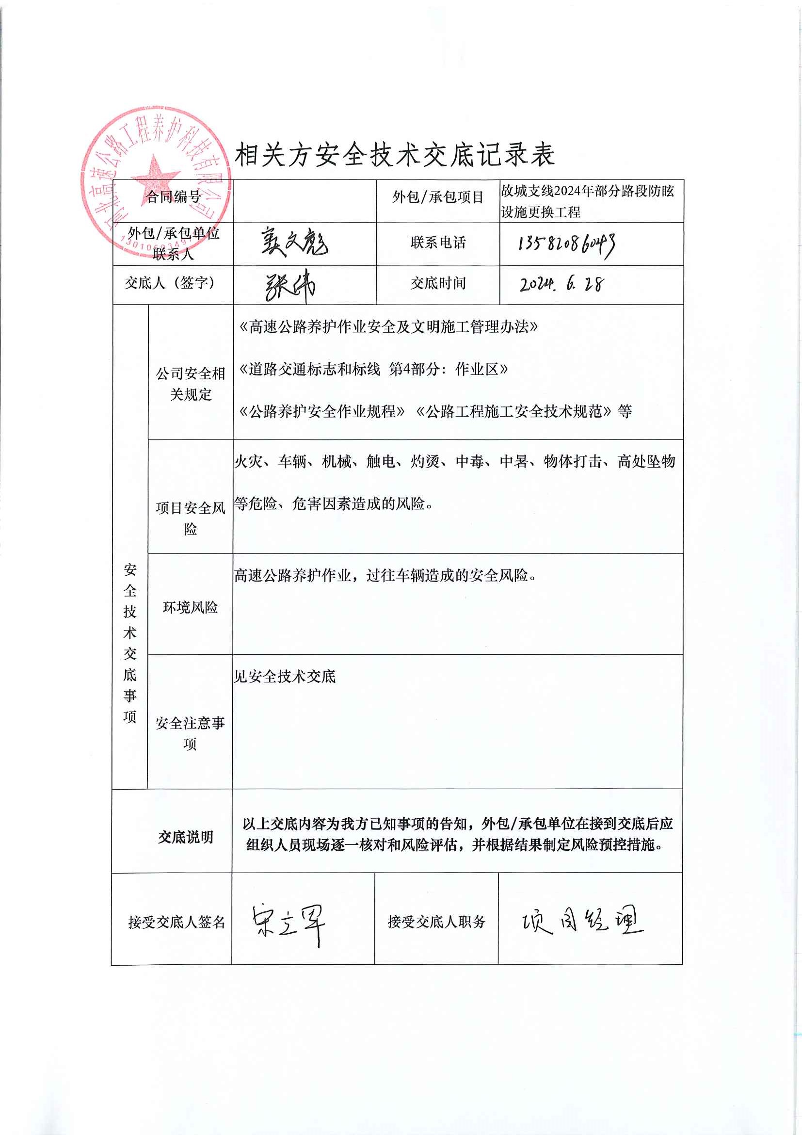 2024年養(yǎng)護工程安全技術(shù)交底及安全培訓(xùn)考核