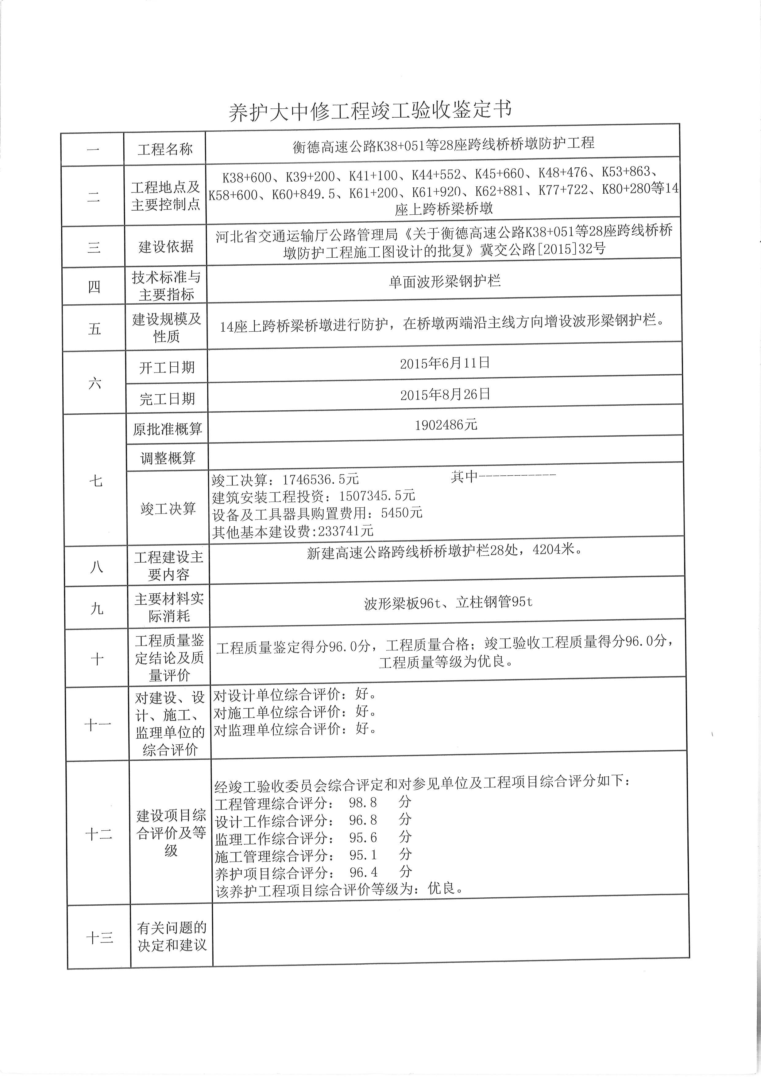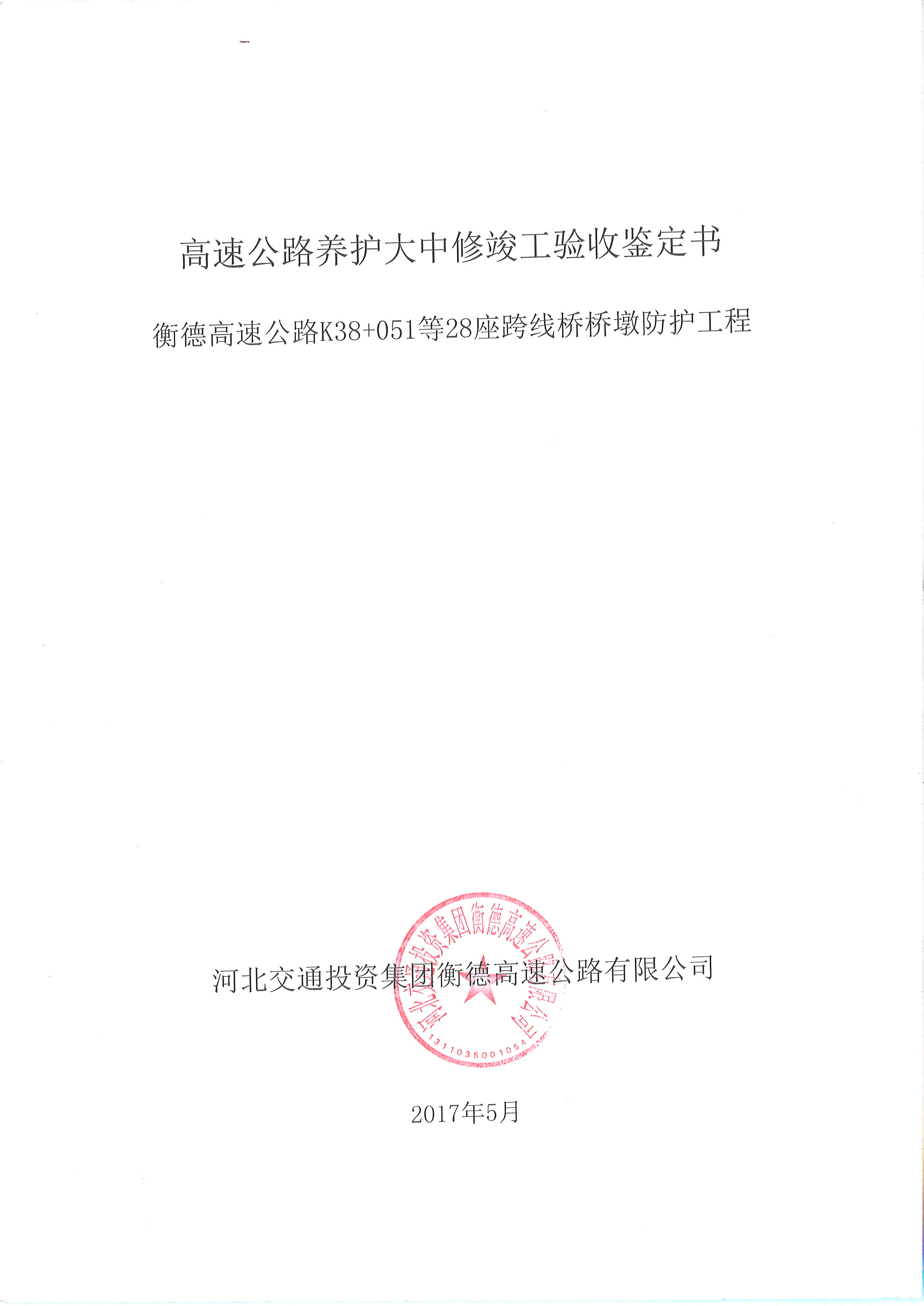 k38+051等28座跨線橋橋墩防護工程竣工驗收鑒定書